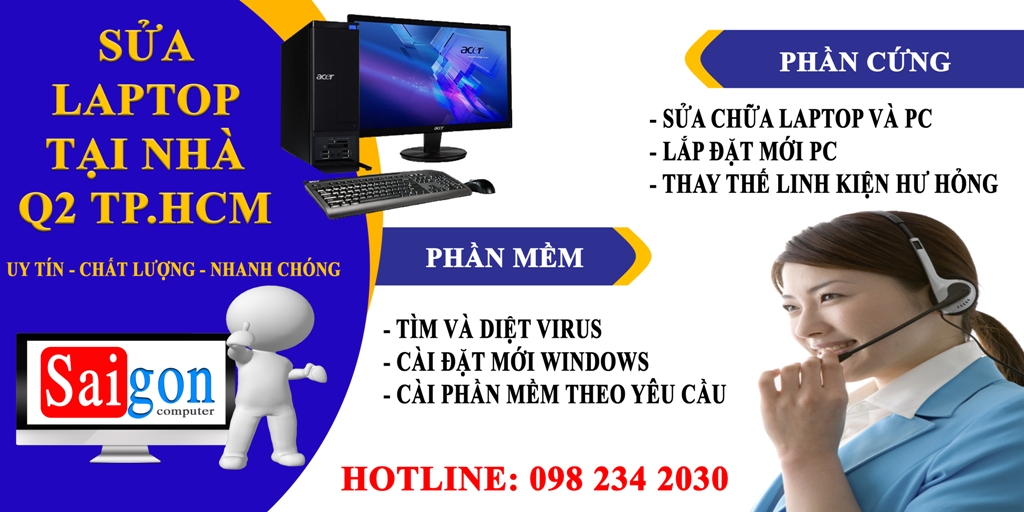 Sửa máy tính tại nhà quận 2 Uy Tín - Giá Rẻ - Chất Lượng - Chuyên Nghiệp - Nhanh Chóng chỉ sau 20-30 phút gọi đến hotline 098 234 2030 – 090 880 9527 sẽ có kỹ thuật viên về tận nơi để sửa chữa. Sửa có bảo hành dài lâu, thay thế linh kiện chính hãng. Chuyên sửa máy tính để bàn (PC) cũng như laptop xách tay